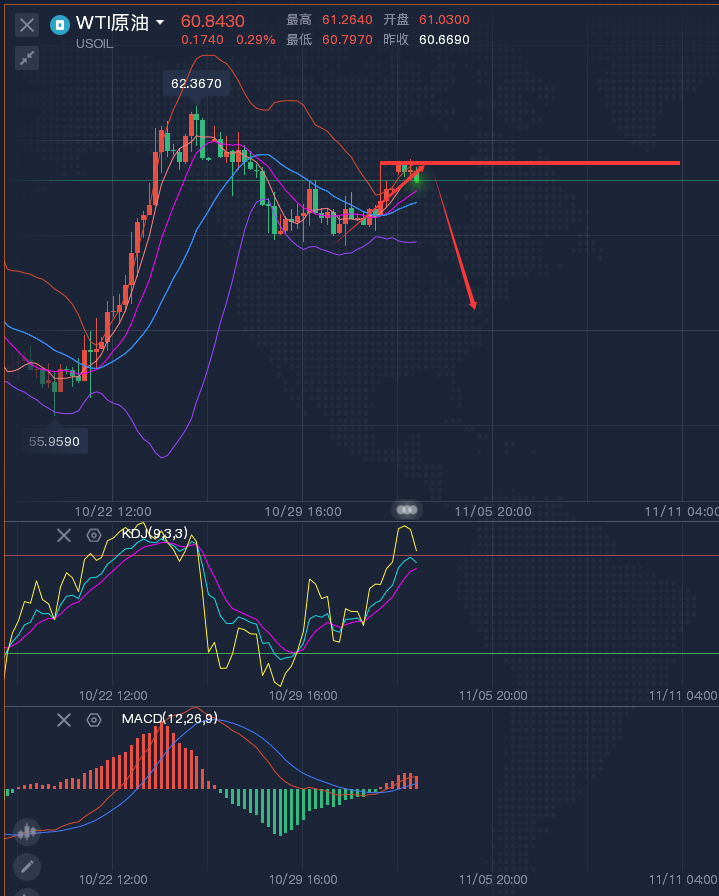 当你明白什么是趋势的时候 ,交易就不再迷茫 ,当你明白什么是重点什么是次要的时候,说明你懂得权衡利弊 。交易就是人心的考量,跌了还想更低 ,而涨了又想更高,每一次失败的案例都是人性的贪婪,而每一次成功的案例都是理性的奖赏 。趋势面前 ,一切逆势的操作都会埋葬自己的资金,而顺势却又不敢下手,跌久了就要做多 ,涨久了就要做空,很多人都是按照这样的思路在进行交易,殊不知这样的思路是没有任何技术依据的。趋势做反了 ,要么转换思路跟随,要么就离场观望,不可以让情绪来操控自己。  ————————消息面  今日周一(11月3日)现货黄金延续反弹势头 ,突破4,000美元心理关口 。美国****停摆已进入第33天 ,国会就共和党主导的拨款法案陷入僵局。尽管特朗普呼吁通过废除参议院阻挠议事规则结束停摆,但共和党领导层暂未采纳,该事件进一步支撑了黄金价格。本周ISM制造业PMI、ADP就业 、密歇根消费者信心将接踵而至 ,此外,需要继续关注美联储官员讲话和美国****停摆进展 。  原油价格短线小幅走高,目前交投于60.82美元/桶附近。欧佩克+延续缓慢增产步伐 ,会议上同意12月份石油产量配额增加13.7万桶/日,并决定2026年1月至3月暂停增产,此举反映了对季节性需求放缓的预期 ,国际原油价格上扬走高。
